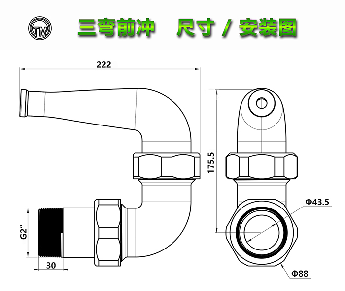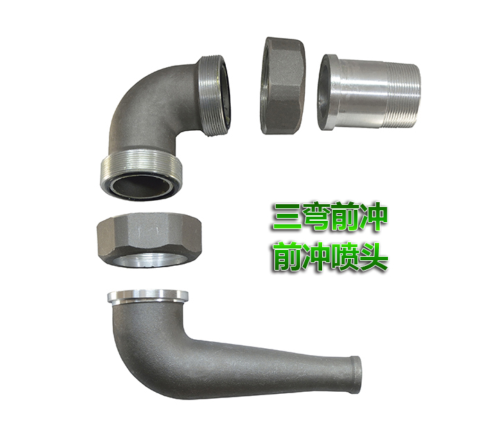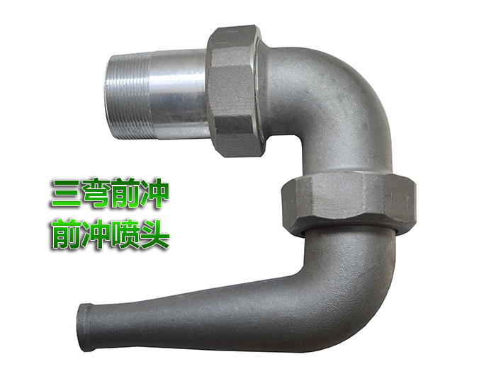 灑水車三彎前沖,是灑水車前沖的升級版,通常安裝位置在駕駛室前下部分。通過灑水泵,噴出兩道高壓水柱,交叉沖洗道路路面,將路面上的泥巴等粘性強的污物沖洗干凈,是灑水車必備的噴頭產品。